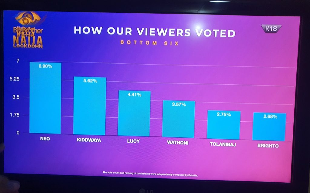 Before her eviction, Wathoni had earlier been saved by other Housemates two weeks consequtively, however, there was a twist in the game as the three Housemates with the least votes were evicted as against the bottom four Housemates having a chance to be save by the other Housemates.