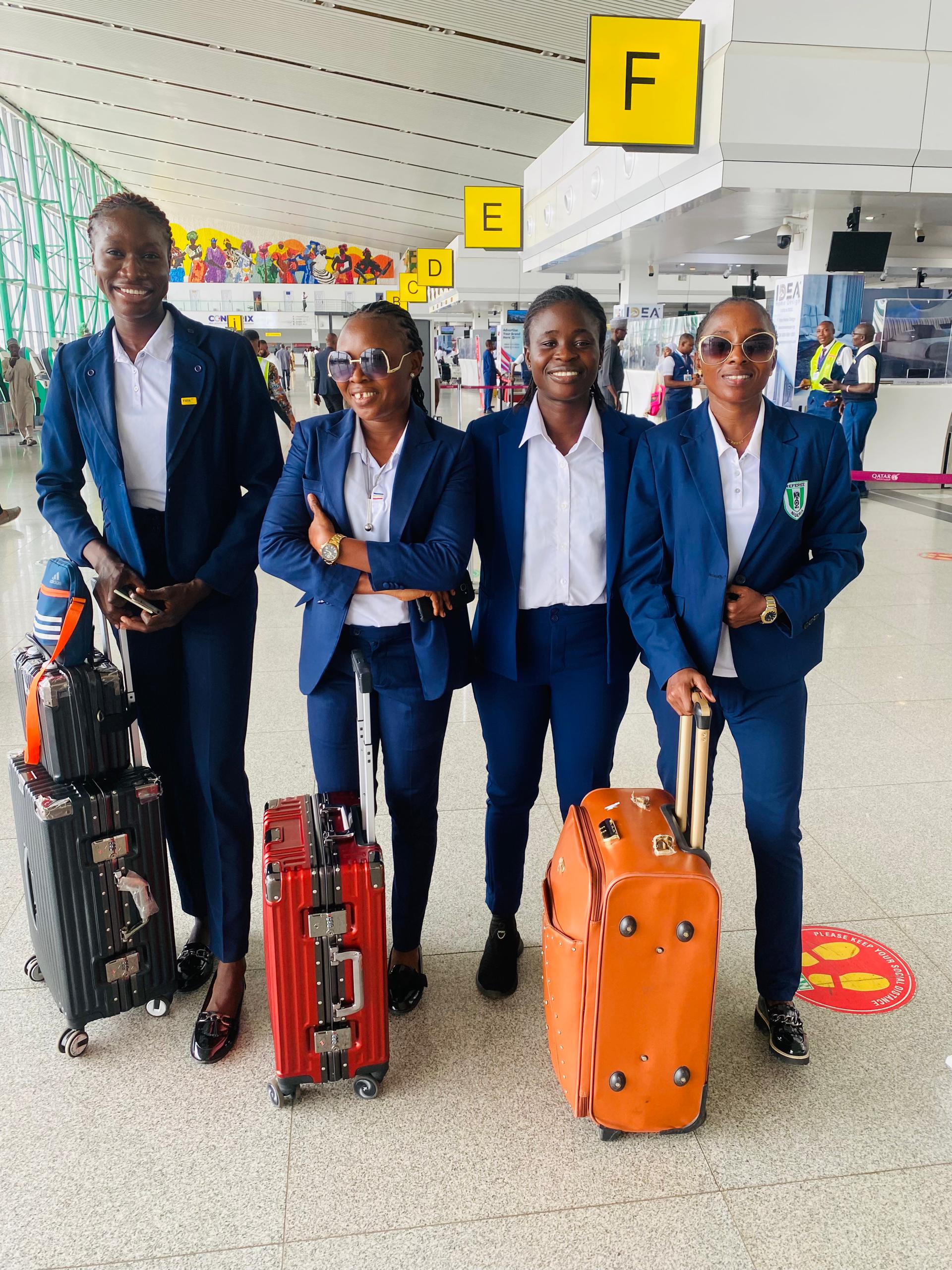 Four Nigerian FIFA referees have landed in Ndola, Zambia, ahead of the highly anticipated second leg of the Women U-17 World Cup qualifier between Zambia and Tanzania. The quartet, who departed from Nnamdi Azikwe International Airport Abuja this morning, include the Referee Akintoye Yemisi, Assistant Referee 1 Beauty Terah, Assistant Referee 2 Akpan Mfon Friday, and Fourth Official Alaba Olufunmilayo.