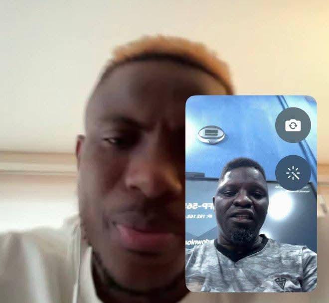 Osimhen on a video call with a smiling Daniel Ogunmodede